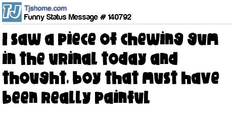 - # 208450 I saw a piece of chewing gum in the urinal today and thought, damn that must have been really painful.