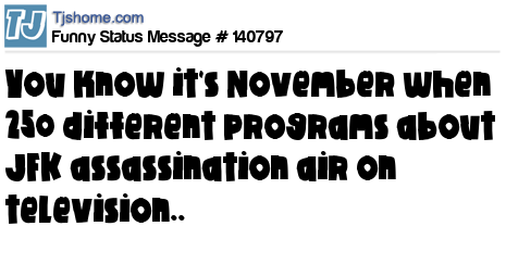 X says You know it's November when 250 different programs about JFK assassination air on television..