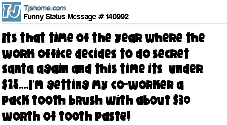 X says Its that time of the year where the work office decides to do secret santa again and this time its under $25....I'm getting my co-worker a pack tooth brush with about $30 worth of tooth paste!
