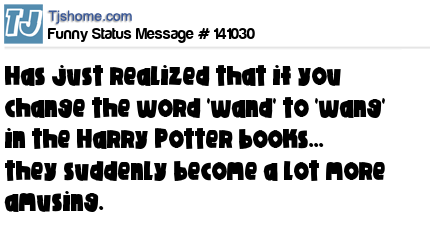 - # 12317 if you replaced every time you read, wand, in a Harry Potter book, with the word Willy, the hilarity is immense.