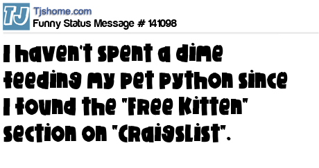X I haven't spent a dime feeding my pet python since I found the "Free Kitten" section on "Craigslist".