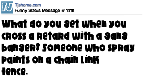 X says What do you get when you cross a retard with a gang banger? Someone who spray paints on a chain link fence.