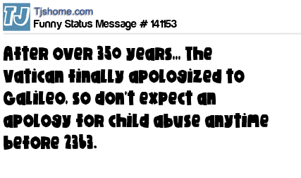 X After over 350 years,,, The Vatican finally apologized to Galileo, so don't expect an apology for child abuse anytime before 2363.