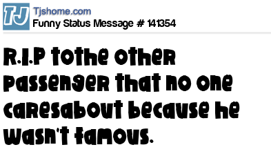 X says R.I.P tothe other passenger that no one caresabout because he wasn't famous.