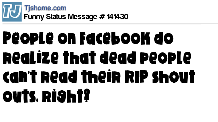 X says People on Facebook do realize that dead people can't read their RIP shout outs, right?