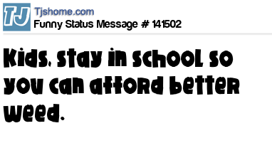 - # 162699 When you're tucking your kids in at night, read them a few select Facebook statuses, kiss them on the forehead and whisper "This is why we must stay in school."..