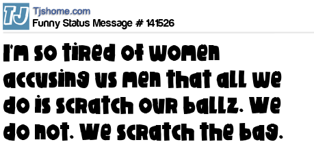 X  I'm so tired of women accusing us men that all we do is scratch our ballz. We do not. We scratch the bag.