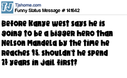 - # 141943 Kanye West said he's the next Nelson Mandela, so when are they gonna bury him?