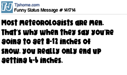 X says Most meteorologists are men. That's why when they say you're going to get 8-12 inches of snow, you really only end up getting 4-6 inches.