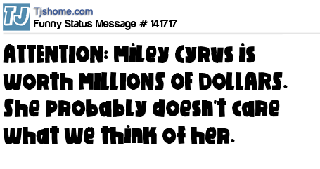 X says ATTENTION: Miley Cyrus is worth MILLIONS OF DOLLARS. She probably doesn't care what we think of her.