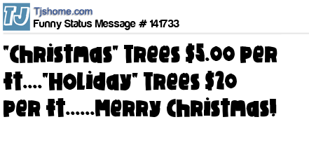 X says "Christmas" Trees $5.00 per ft...."Holiday" Trees $20 per ft......Merry Christmas!