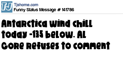 X says Antarctica wind chill today -135 below. Al Gore refuses to comment