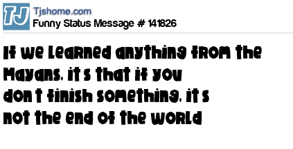 X says If we learned anything from the Mayans, it’s that if you don’t finish something, it’s not the end of the world