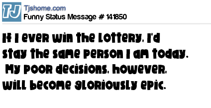 X says If I ever win the lottery, I'd stay the same person I am today. My poor decisions, however, will become gloriously epic.