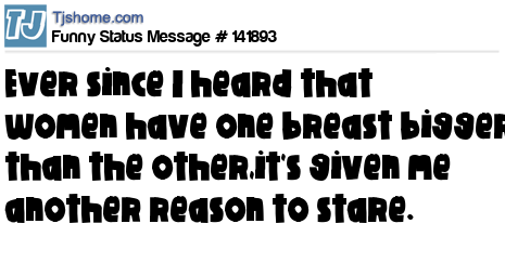 X says Ever since I heard that women have one breast bigger than the other,it's given me another reason to stare.