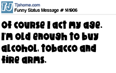 X says Of course I act my age. I'm old enough to buy alcohol, tobacco and fire arms.