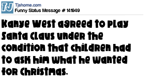 - # 158291 Kanye West only accepted the role of Santa Claus after the director agreed to change the script so that the kids all asked him what he wanted for Christmas.