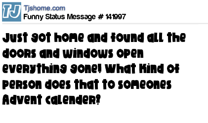 X says Just got home and found all the doors and windows open everything gone! What kind of person does that to someones Advent calender?