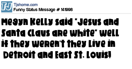 X  Megyn Kelly said "Jesus and Santa Claus are white" well if they weren't they live in  Detroit and East St. Louis!