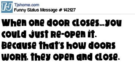 - # 142138 When one door closes another one opens. Or you could jut re-open the closed door. Because that’s how doors work.