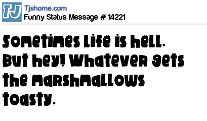 X says Sometimes life is hell. But hey! Whatever gets the marshmallows toasty.