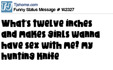 X says what's twelve inches and makes girls wanna have sex with me? my hunting knife