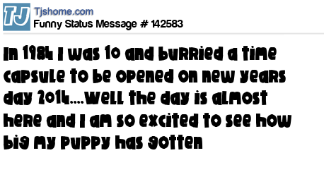 X In 1984 I was 10 and burried a time capsule to be opened on new years day 2014....Well the day is almost here and I am so excited to see how big my puppy has gotten
