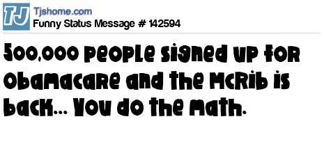 X 500,000 people signed up for Obamacare and the McRib is back... You do the math.