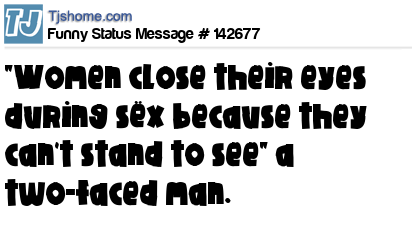 - # 39599 I now know why women close their eyes during sex. They cant stand to see a man enjoy himself.