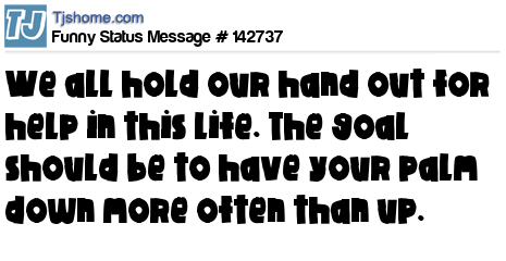 X We all hold our hand out for help in this life. The goal should be to have your palm down more often than up.
