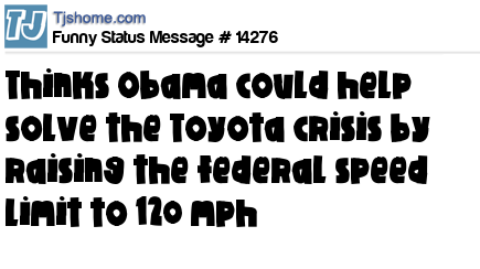 X thinks Obama could help solve the Toyota crisis by raising the federal speed limit to 120 mph