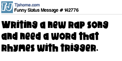 X  Writing a new rap song and need a word that rhymes with trigger.