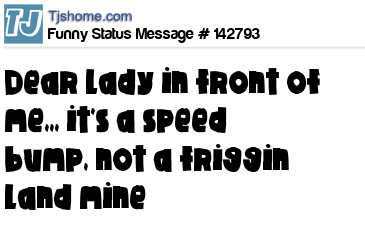 X Dear lady in front of me,,, it's a speed bump, not a friggin land mine