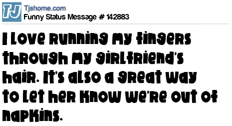 X says I love running my fingers through my girlfriend's hair. It's also a great way to let her know we're out of napkins.