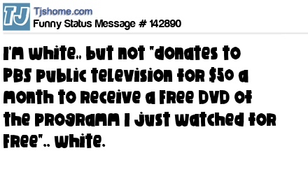 X  I'm white,, but not "donates to PBS public television for $50 a month to receive a Free DVD of the programm I just watched for Free".. white.