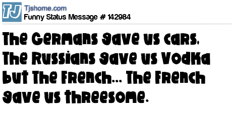 X says The Germans gave us cars, The Russians gave us Vodka but The French... The French gave us threesome.