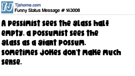X says a pessimist sees the glass half empty. a possumist sees the glass as a giant possum. sometimes jokes don't make much sense.