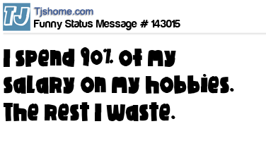 X says I spend 90% of my salary on my hobbies. The rest I waste.
