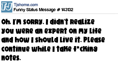 X says Oh, I'm sorry. I didn't realize you were an expert on my life and how I should live it. Please continue while I take f*cking notes.