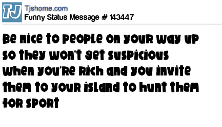 X says Be nice to people on your way up so they won't get suspicious when you're rich and you invite them to your island to hunt them for sport