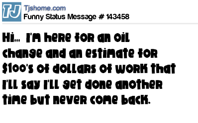 X Hi,,, I'm here for an oil change and an estimate for $100's of dollars of work that I'll say I'll get done another time but never come back.