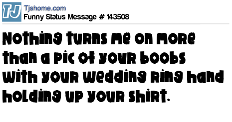 X says Nothing turns me on more than a pic of your boobs with your wedding ring hand holding up your shirt.