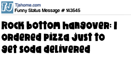 X says Rock bottom hangover: I ordered pizza just to get soda delivered