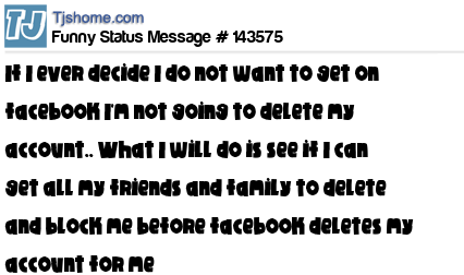 X says If I ever decide I do not want to get on facebook I'm not going to delete my account.. What I will do is see if I can get all my friends and family to delete and block me before facebook deletes my account for me