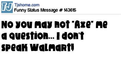 - # 153430 No, you may not "axe" me a question. I don't speak Walmart.