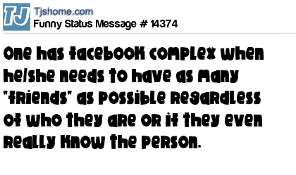 X one has facebook complex when he/she needs to have as many "friends" as possible regardless of who they are or if they even really know the person.