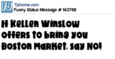 X says If Kellen Winslow offers to bring you Boston Market, say NO!