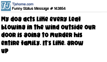 X says My dog acts like every leaf blowing in the wind outside our door is going to murder his entire family. It's like, grow up
