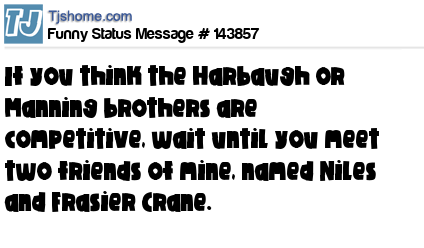 X says If you think the Harbaugh or Manning brothers are competitive, wait until you meet two friends of mine, named Niles and Frasier Crane.