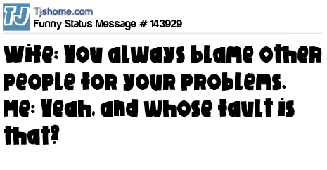 X says Wife: You always blame other people for your problems. Me: Yeah, and whose fault is that?